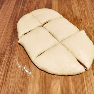 7. 拿出發酵好的麵糰按壓排氣后,將麵糰分成6等分;